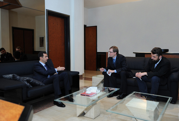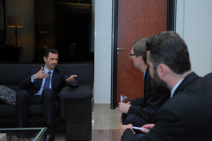 Wenn Sie darauf bestehen, dass ich eine Botschaft an die Welt richte, dann sage ich folgendes: wenn jemand davon träumt, Syrien zu einer Marionette des Westens zu machen, so wird das nicht geschehen. Wir sind ein unabhängiger Staat und werden gegen den Terrorismus Krieg führen, wir werden Beziehungen mit den Ländern, mit denen wir selbst das wollen, frei aufbauen, all das zum Wohl des syrischen Volkes.