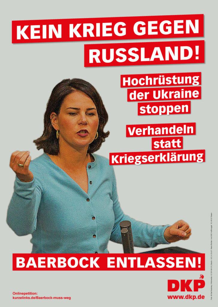 Der Parteivorstand der DKP hat eine entsprechende Petition "Baerbock muss weg" (openpetition.de) veröffentlicht: kurzelinks.de/Baerbock-muss-weg
