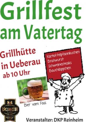 Auch dieses Jahr findet am "Vatertag", 18.05.2023, wieder das traditionelle Grillfest der DKP Reinheim ab 10 Uhr an der Grillhütte Ueberau statt.