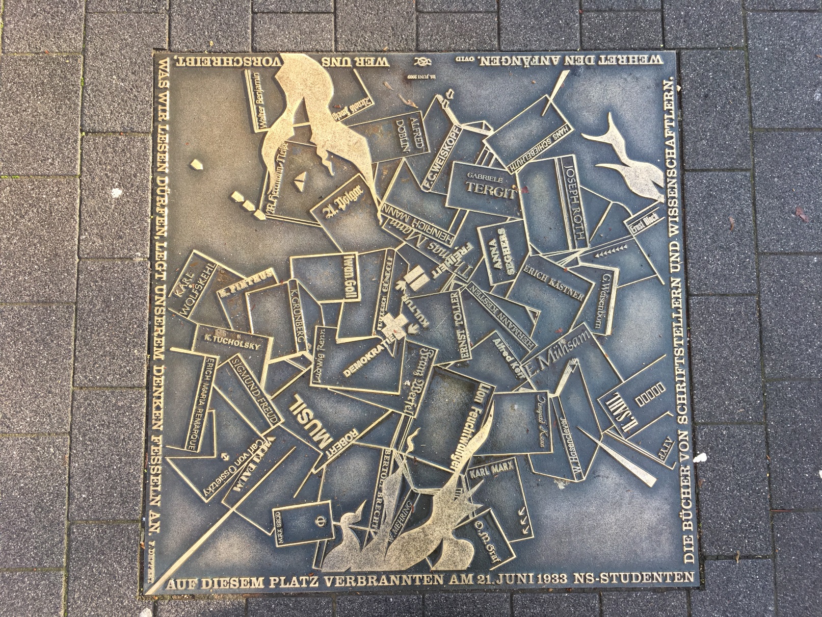 Am 21.06.1933 zog die Darmstädter NS-Studentenschaft zunächst zu einer Sonnenwendfeier am Bismarckturm und von dort im Fackelzug zum Mercksplatz, wo im Rahmen einer Kundgebung "wider den undeutschen Geist" einige tausend Bücher, die man zuvor bei Haussammlungen in der Stadt oder bei Hausdurchsuchungen beschlagnahmt hatte, verbrannt wurden.
