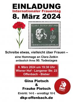 Infostand der DKP im EKZ Darmstadt-Kranichstein, Mirjam-Pressler-Strasse ab 8. März ab 16 Uhr