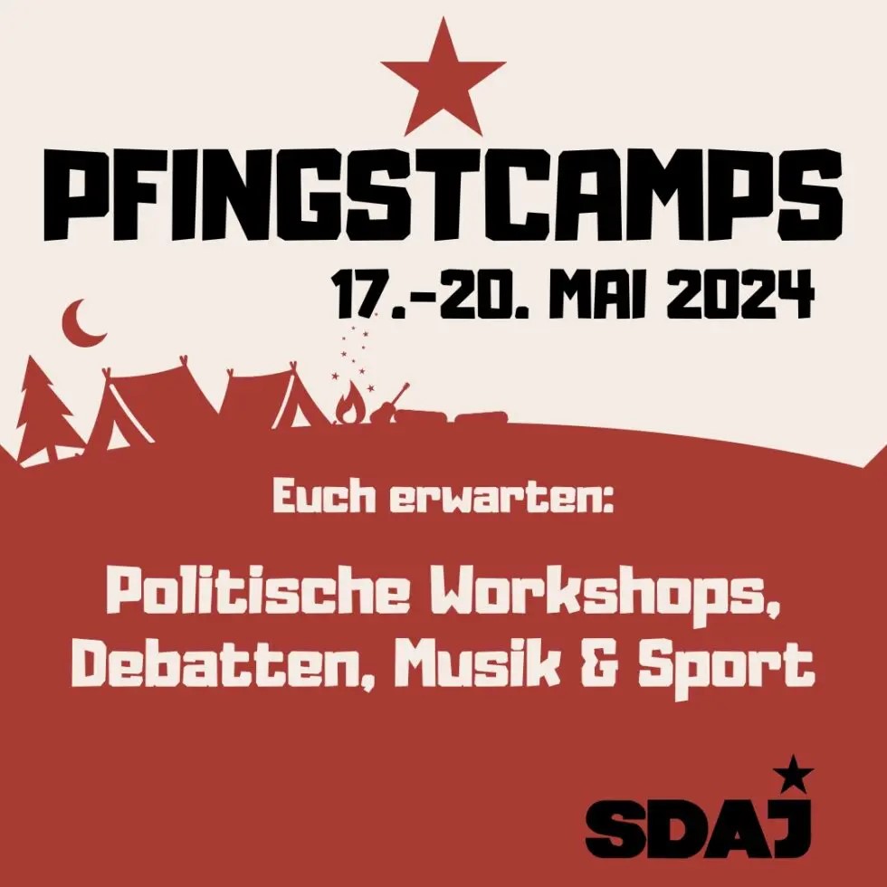 Das Südcamp findet wie schon letztes Jahr im baden-württembergischen Zwingenberg am Neckar im Grünen statt. Gemeinsam mit Jugendlichen aus Hessen, Rheinland-Pfalz und Baden-Württemberg wie auch internationalen Gästen verbringen wir ein Pfingstwochenende voller Spaß, Kultur und Inhalt. Neben Programm zu Themen, die uns als Arbeiterjugendliche beschäftigen, Workshops zum Krieg gegen Palästina, Frauenpolitik, Vernetzungsmöglichkeiten für SchülerInnen und Azubis, erwarten Euch auch feierliche Abende, Freizeitangebote und Musik.