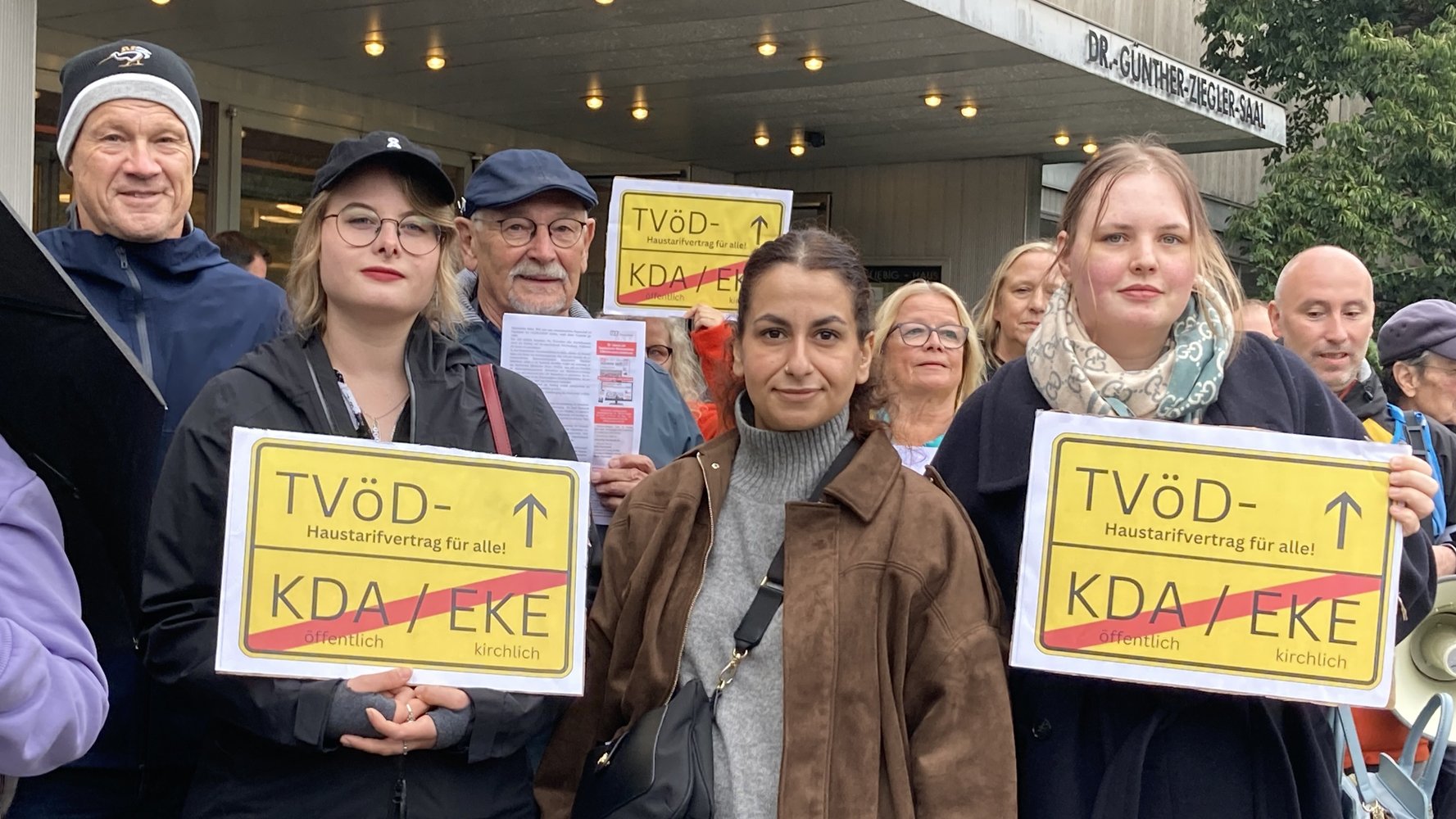 In den beschriebenen Zwischenschritten bis dahin erhalten die Beschäftigten eine Reihe von "Beruhigungspille": Man will sich "bemühen die arbeitsrechtlichen Rahmenbedingungen anzugleichen." Sämtliche Mitarbeiter sollen in ein Tarifwerk überführt werden mit "Anlehnung an den TVÖD", man will sich bemühen "die Mitbestimmungsgremien (Betriebsrat und Mitarbeitervertretung) frühzeitig und umfassend über alle Maßnahmen zu informieren." Im Gesellschaftervertrag ist ein "Einstimmigkeits-Katalog" beschrieben, der positiverweise auch das Tarif- und Arbeitsrecht beinhaltet.